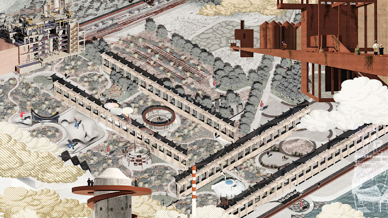 Porto Marghera, once a symbol of Italy's chemical industry, has now become a polluted industrial wasteland marked by decaying infrastructure and fragmented ecosystems. This design project proposes a 'regenerative framework' that does not shy away from this historical legacy, but instead integrates it into ecological processes, social activation, and site memory, creating a new urban district that serves both people and nature.